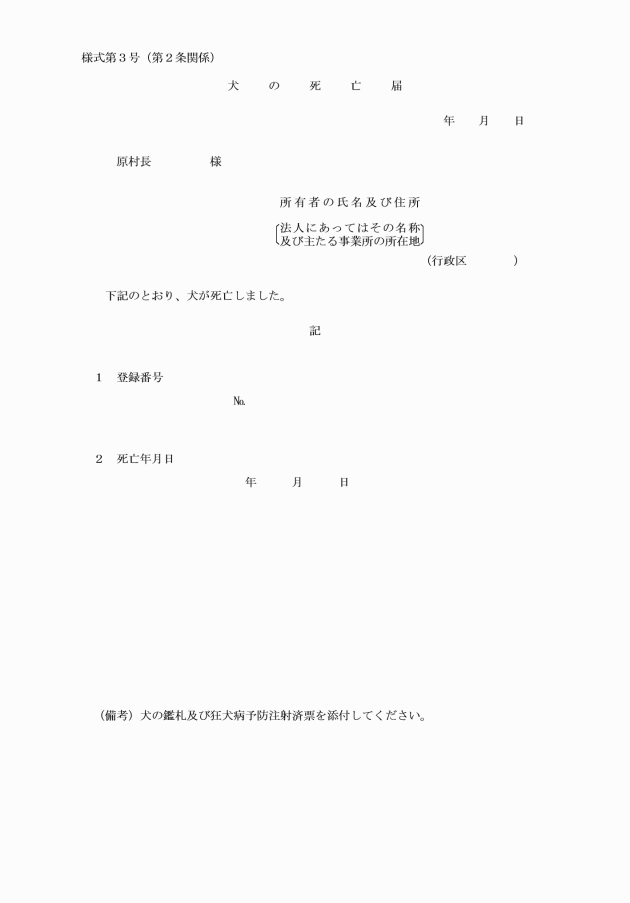 (3) 規則第8条第1項の規定による犬の死亡届(様式第3号)