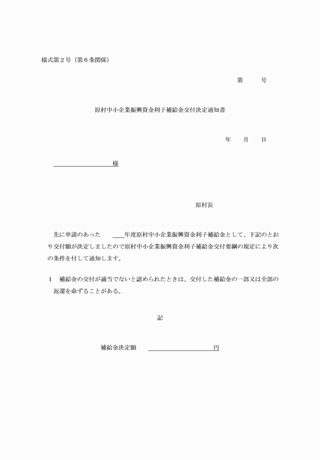 第7条 補給金の交付決定を受けた者が、補給金の交付を請求しようとするときは、原村中小企業振興資金利子補給金交付請求書(様式第3号)を、村長に提出するものとする。